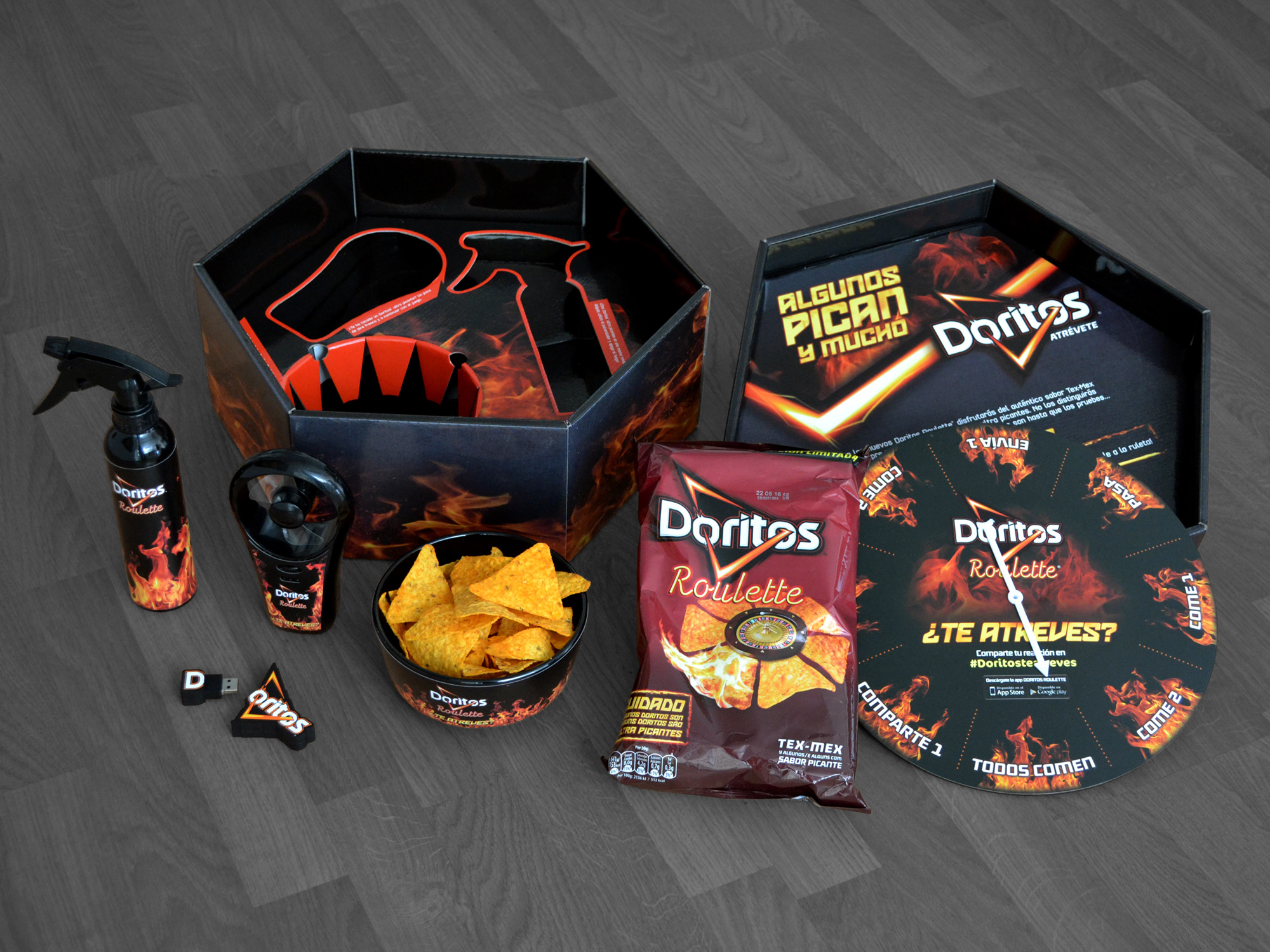 Per el llançament del nou producte Doritos Roulette al mercat espanyol se’ns va encarregar el disseny i la producció de kit de premsa per una campanya de comunicació amb influencers, bloggers i periodistes.