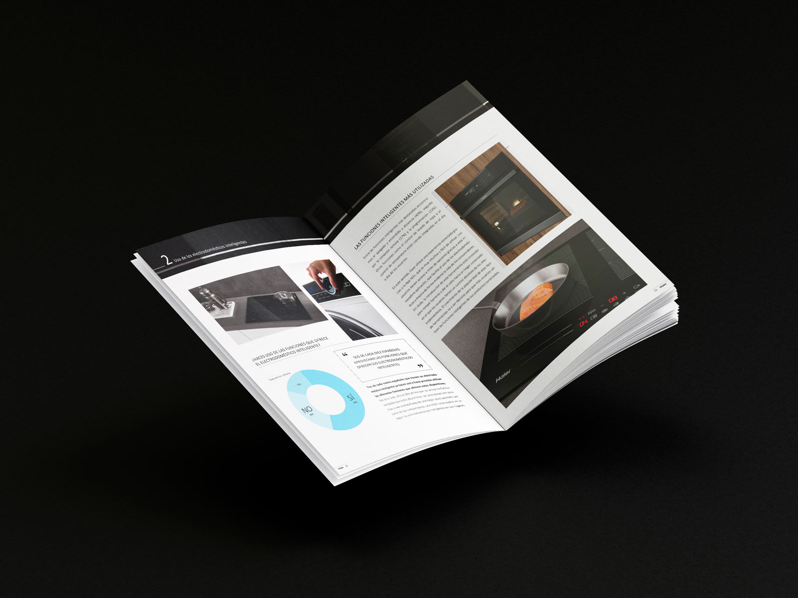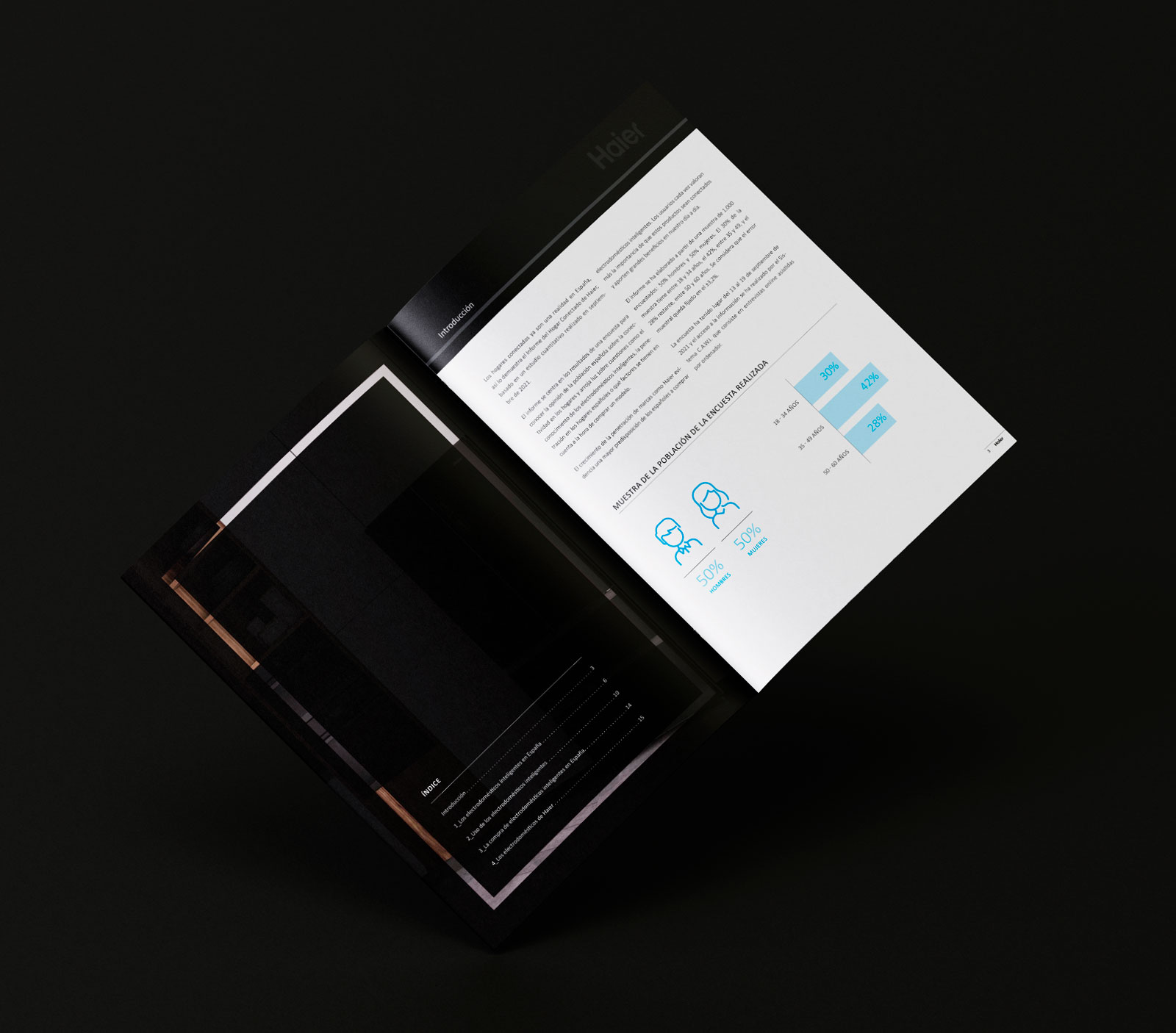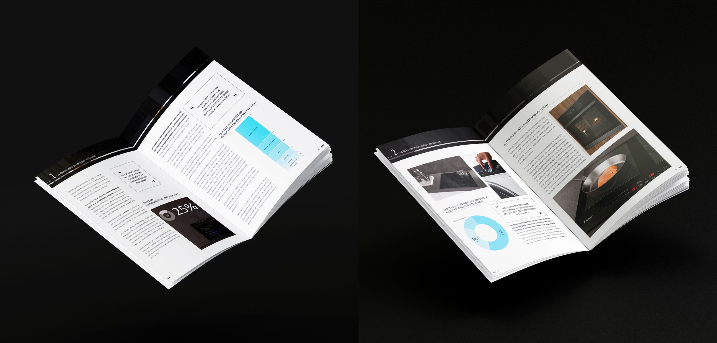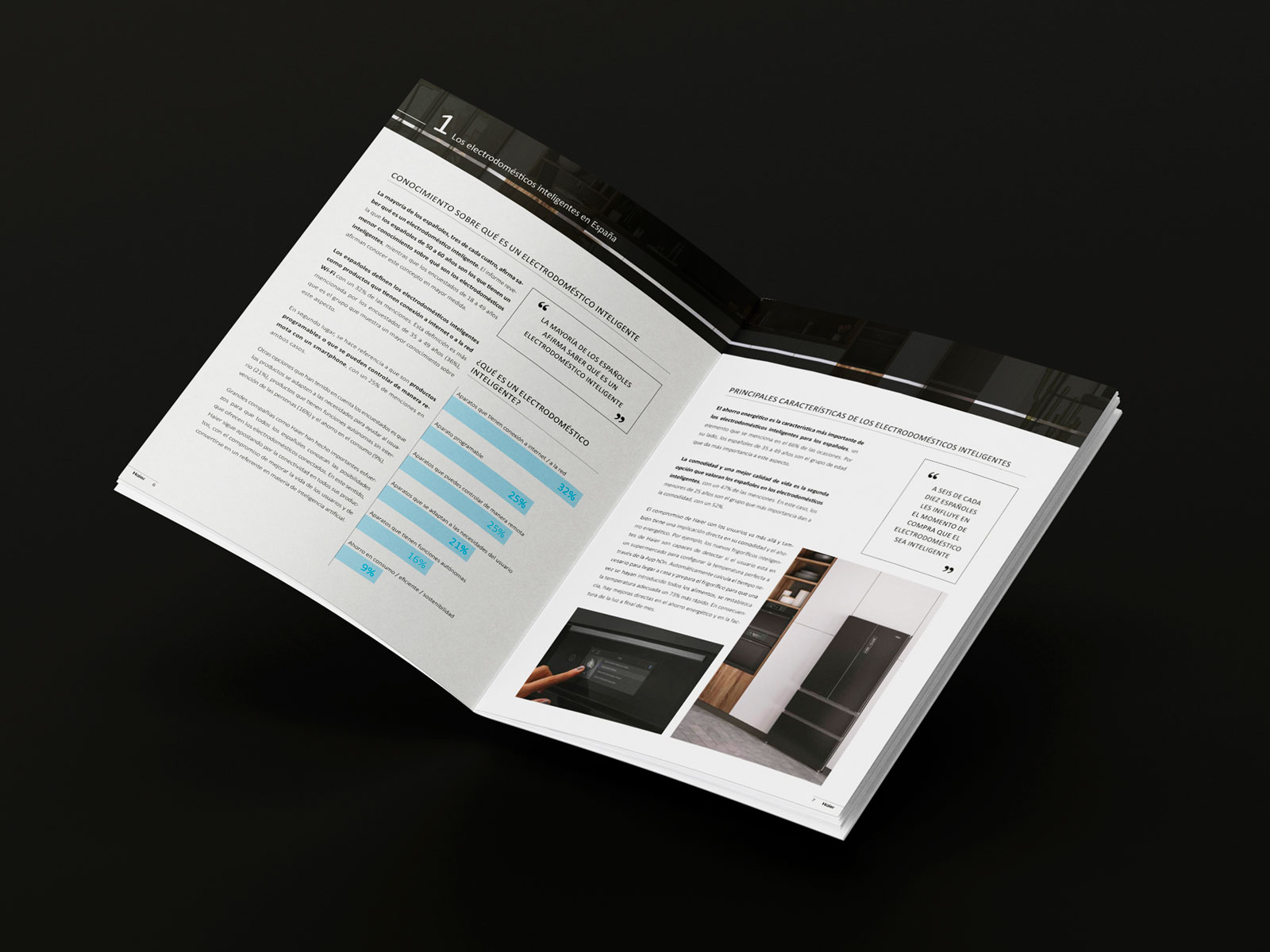 Haier és una marca d’electrodomèstics d’alta gama. Ens encarraguem del disseny i maquetació de l’informe 2022 sobre l’estudi de mercat dels electrodomèstics intel·ligents a Espanya.