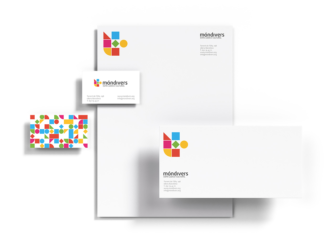 Móndivers és un espai lúdico-cultural que basa la seva activitat en 3 grans àmbits: ludoteca, exposicions i cursos. Per aquest motiu es desenvolupà una imatge corporativa dinàmica inspirada en els jocs de construcció.